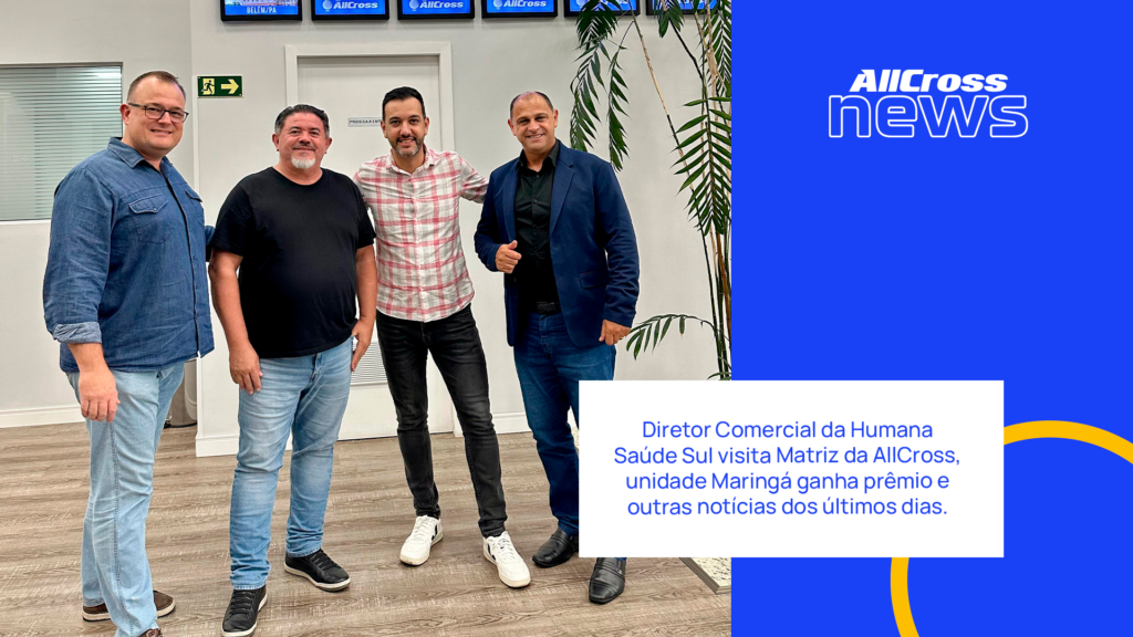 A matriz, em Curitiba, recebeu a importante visita do novo Diretor Comercial da Humana Sul, Rodrigo Goes. O coordenador nacional Wanderlei, o CEO do Grupo AllCross Francisco Nogueira e o gestor das administradoras Fabiano estiveram presentes. Confira um registro: